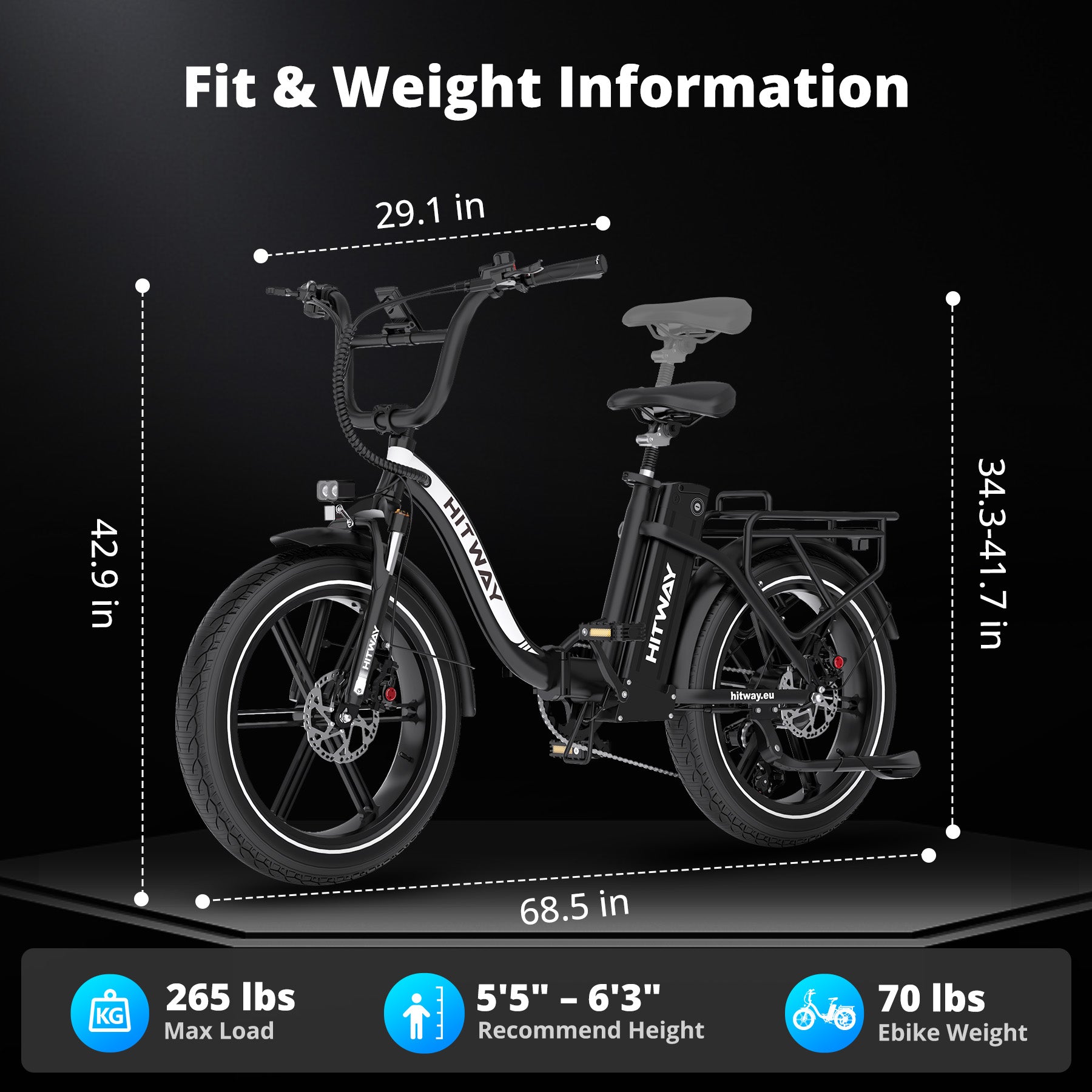 - Rider height 5'5"-6'3"(165-190 cm)