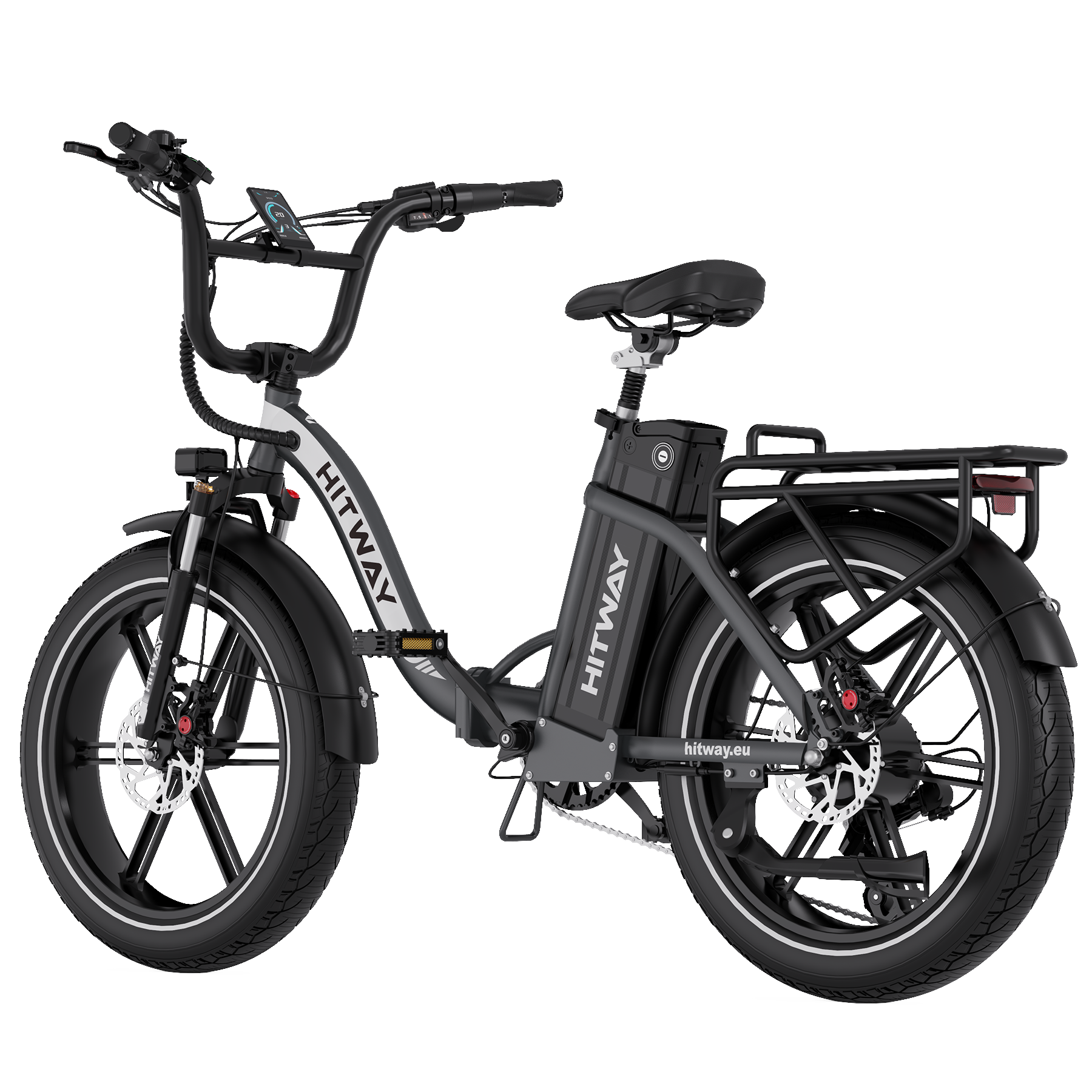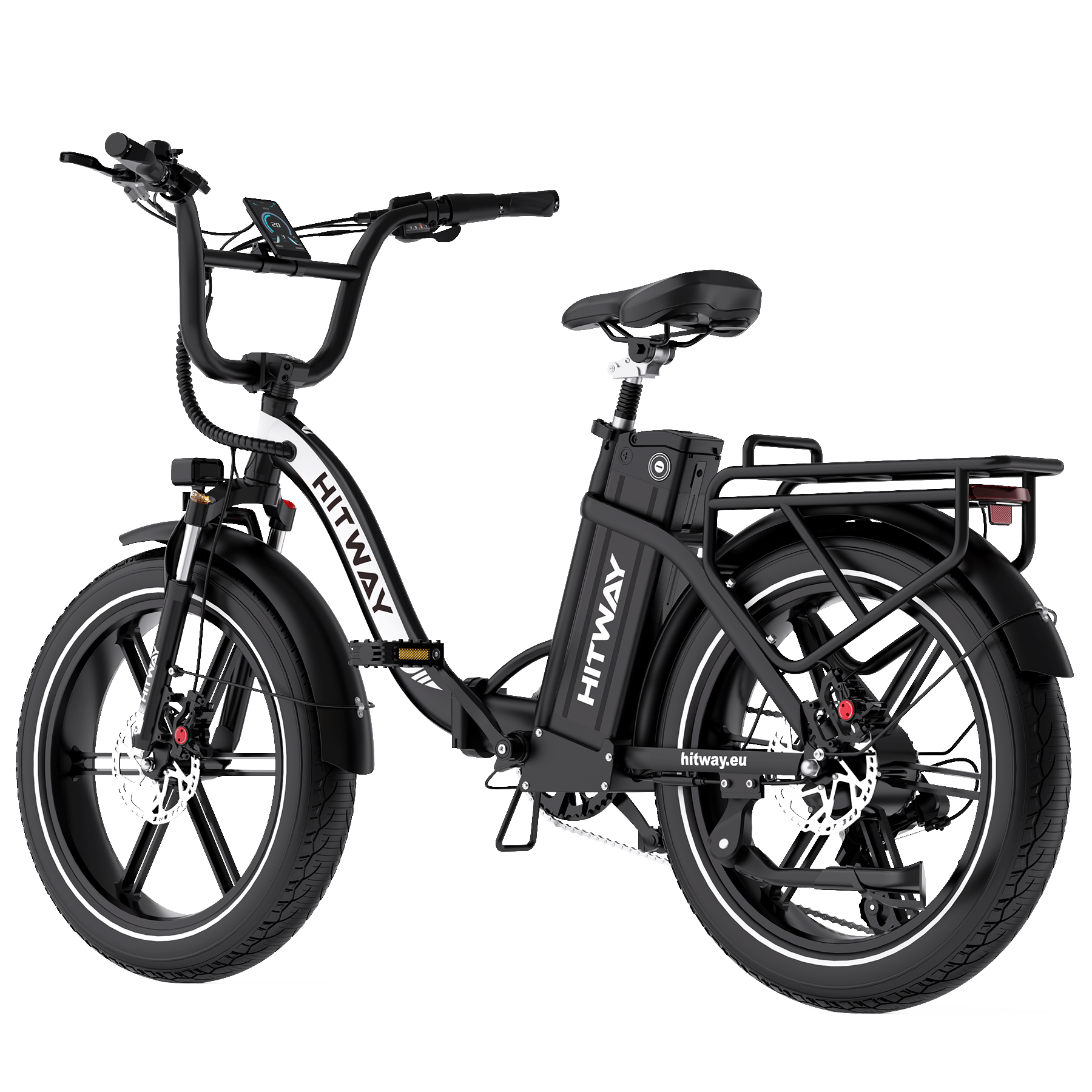 The wide 20×4.0 fat tyres deliver exceptional grip and cushioning, allowing the bike to handle tarmac, cobblestones, gravel paths, and park trails with ease. Their puncture-resistant construction helps reduce flats, while the wide footprint keeps you stable and comfortable in all weather conditions.